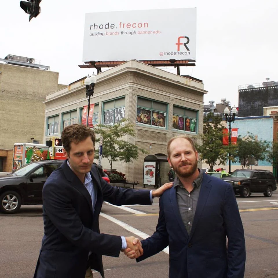 My boss was the Media Director. Well, he was a boss, but I also would call him a close friend (he will deny this if you ask him.) So I decided that, unbeknownst to him, he and I would start our own agency called RhodeFrecon and we'd promote it using my free billboard.